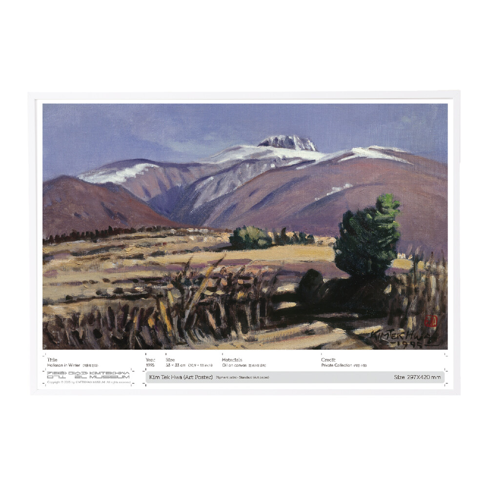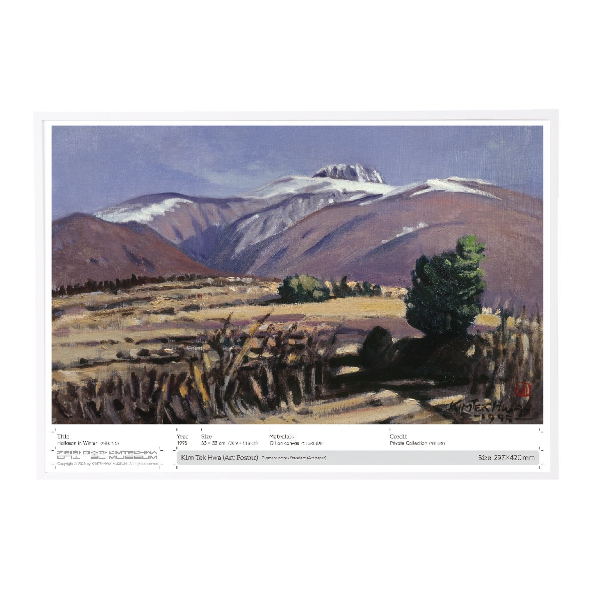 작품의 정보와 재단선, 편집 요소를 디자인의 일부로 활용하여 작품의 기록을 오롯이 담아낸 김택화미술관의 아트포스터입니다.