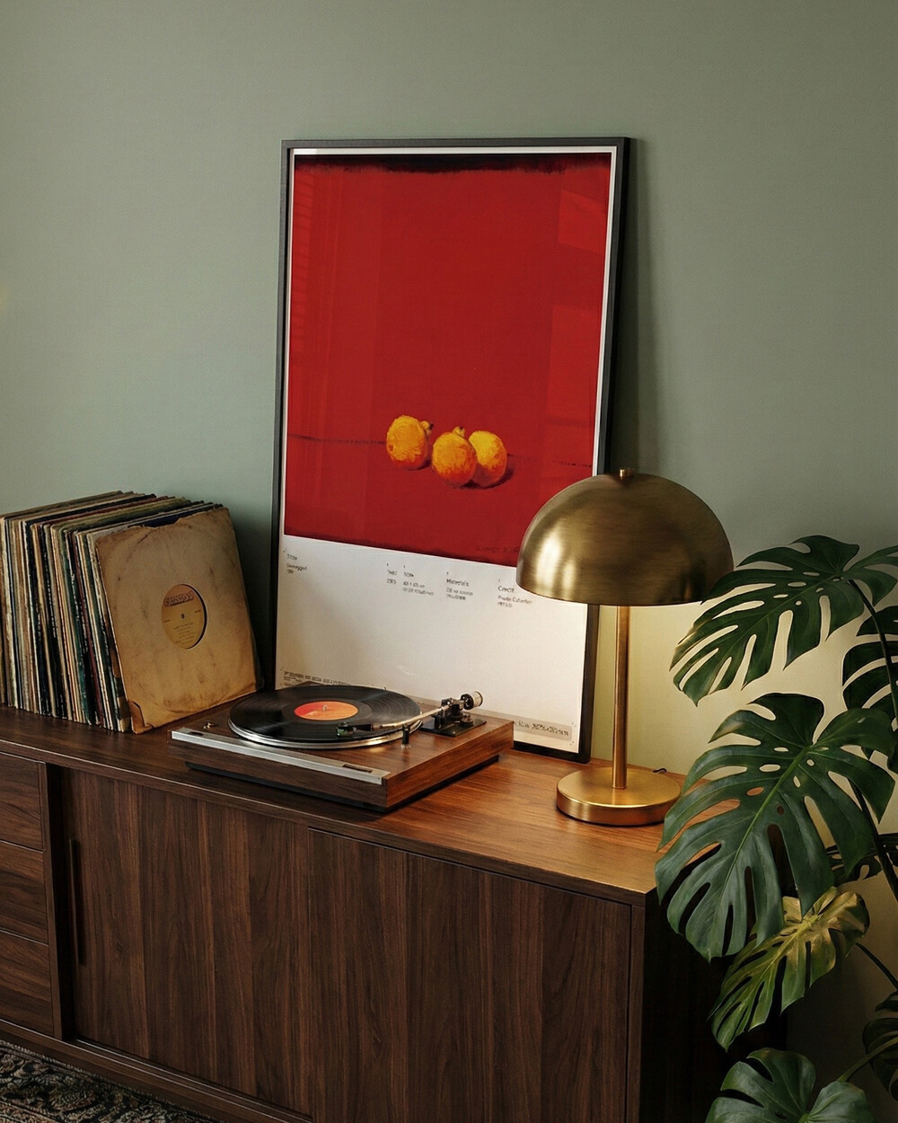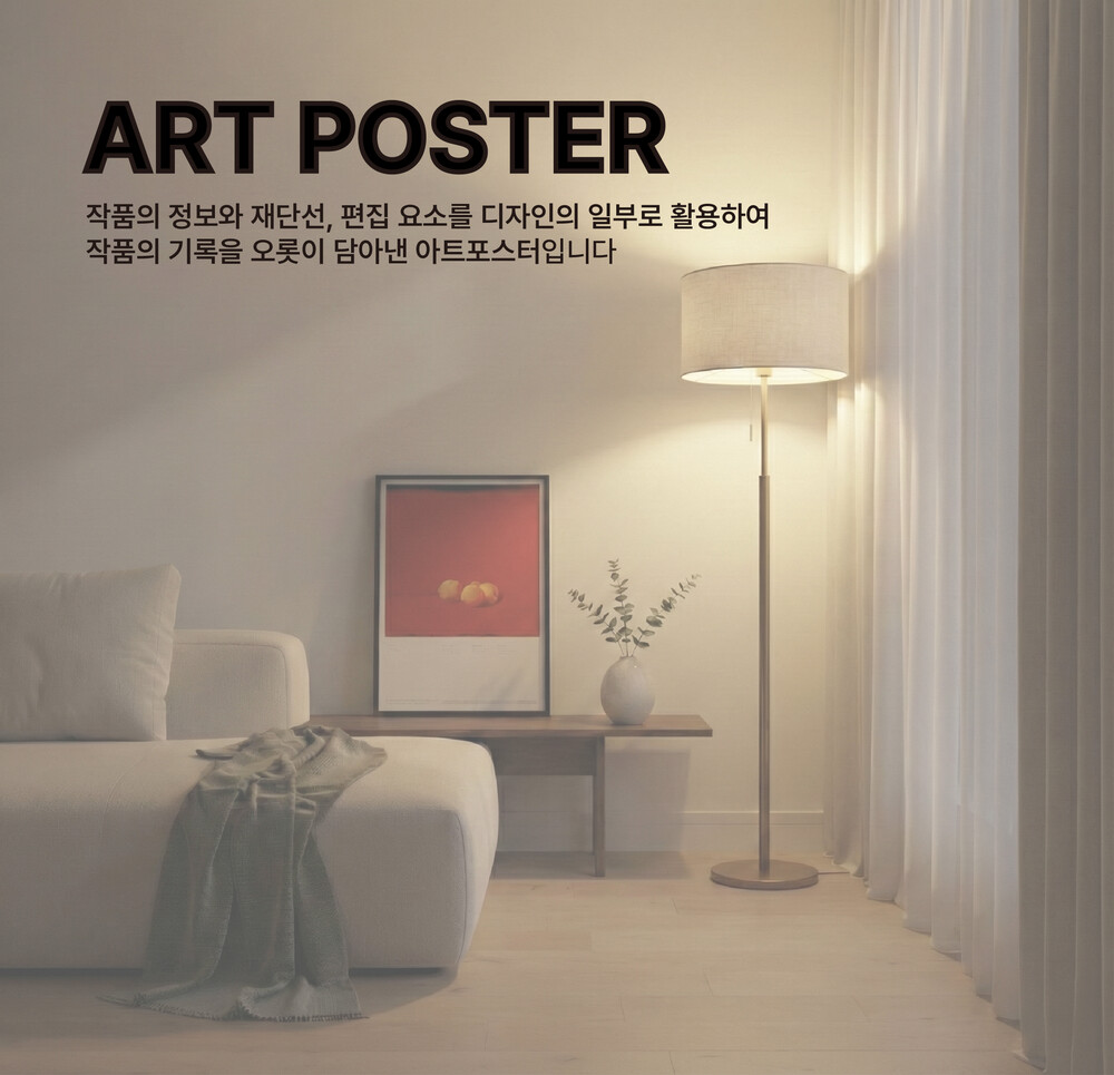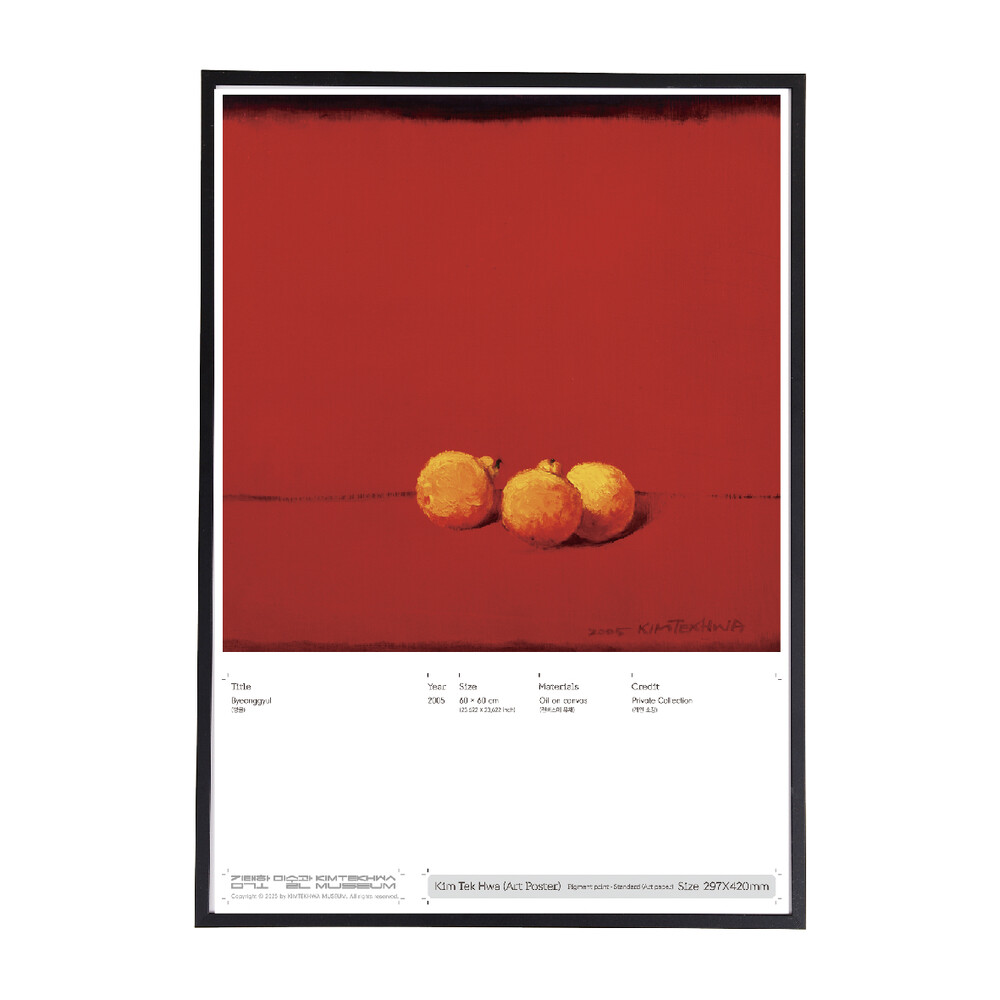 작품의 정보와 재단선, 편집 요소를 디자인의 일부로 활용하여 작품의 기록을 오롯이 담아낸 김택화미술관의 아트포스터입니다.