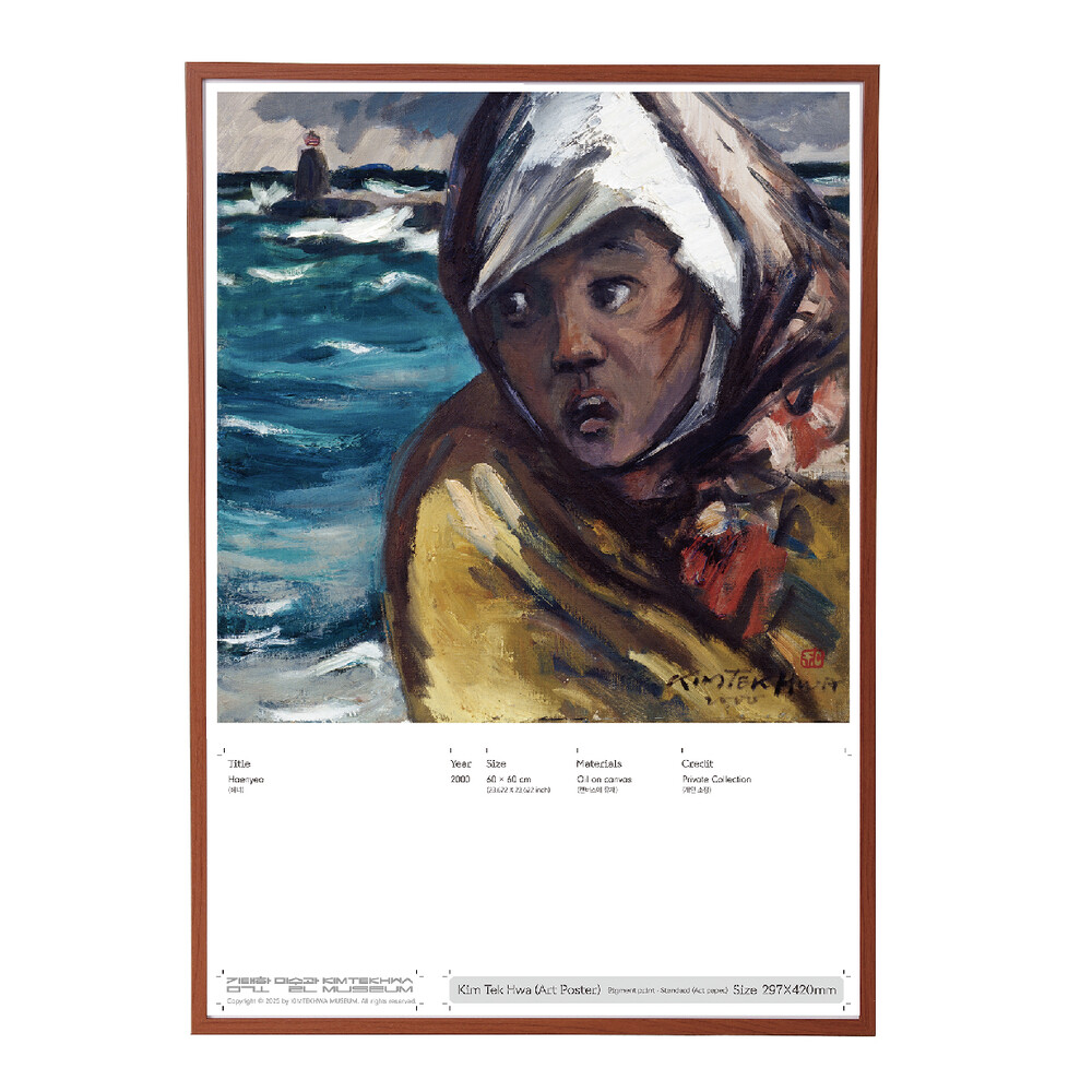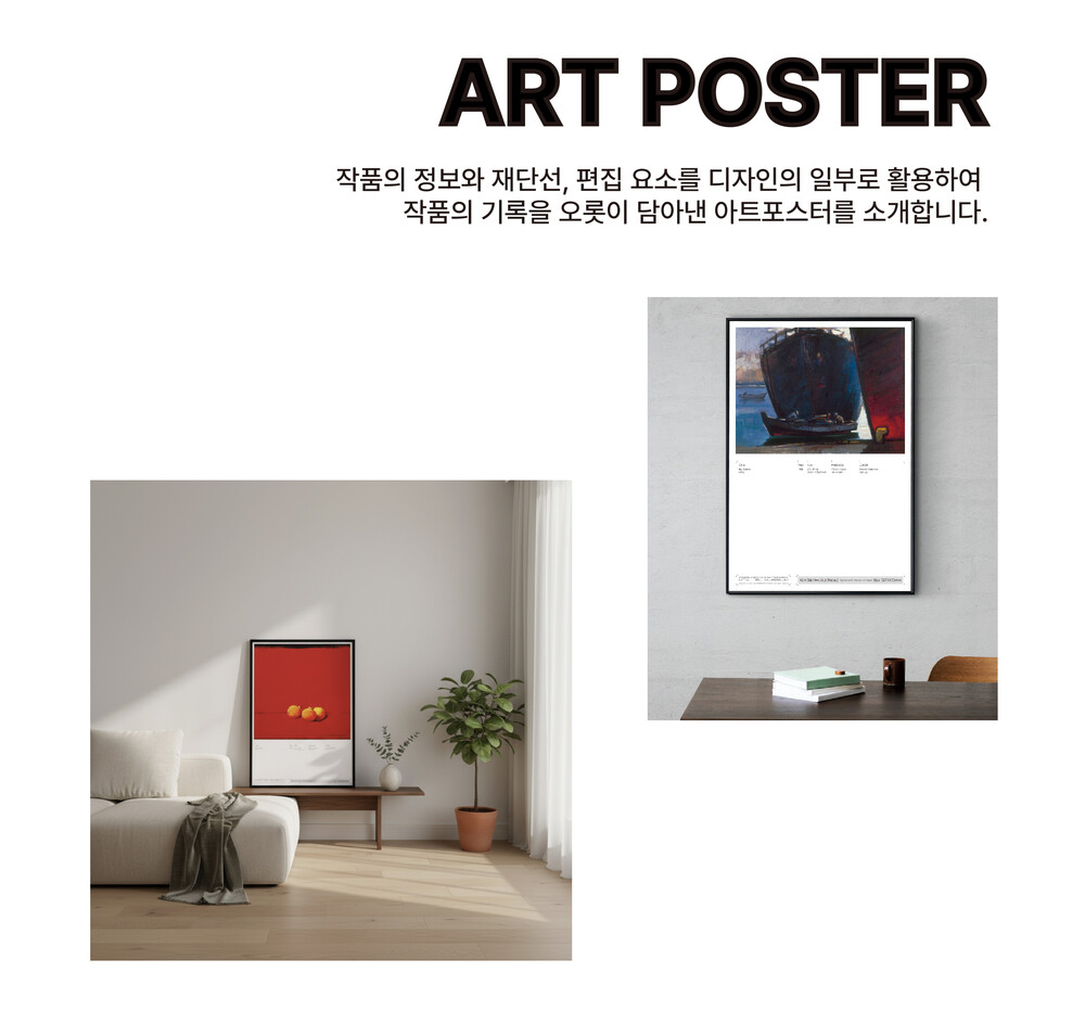 작품의 정보와 재단선, 편집 요소를 디자인의 일부로 활용하여 작품의 기록을 오롯이 담아낸 김택화미술관의 아트포스터입니다.