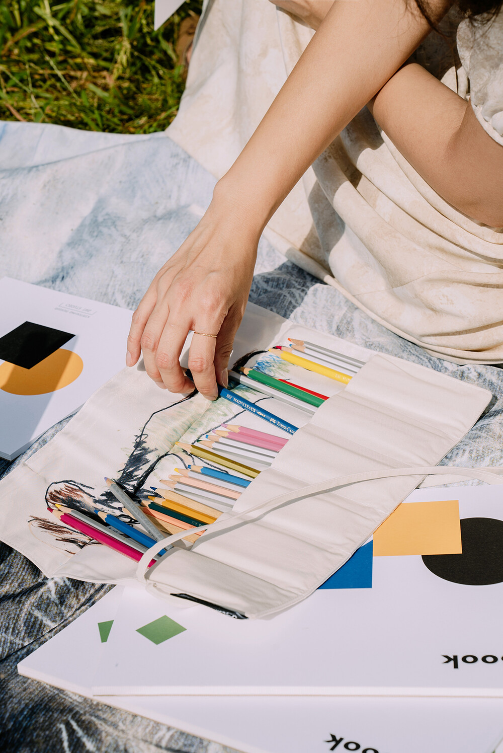 가볍게 걸친 가방에 스케치북과 색연필을 담아 여행을 떠나 볼까요?