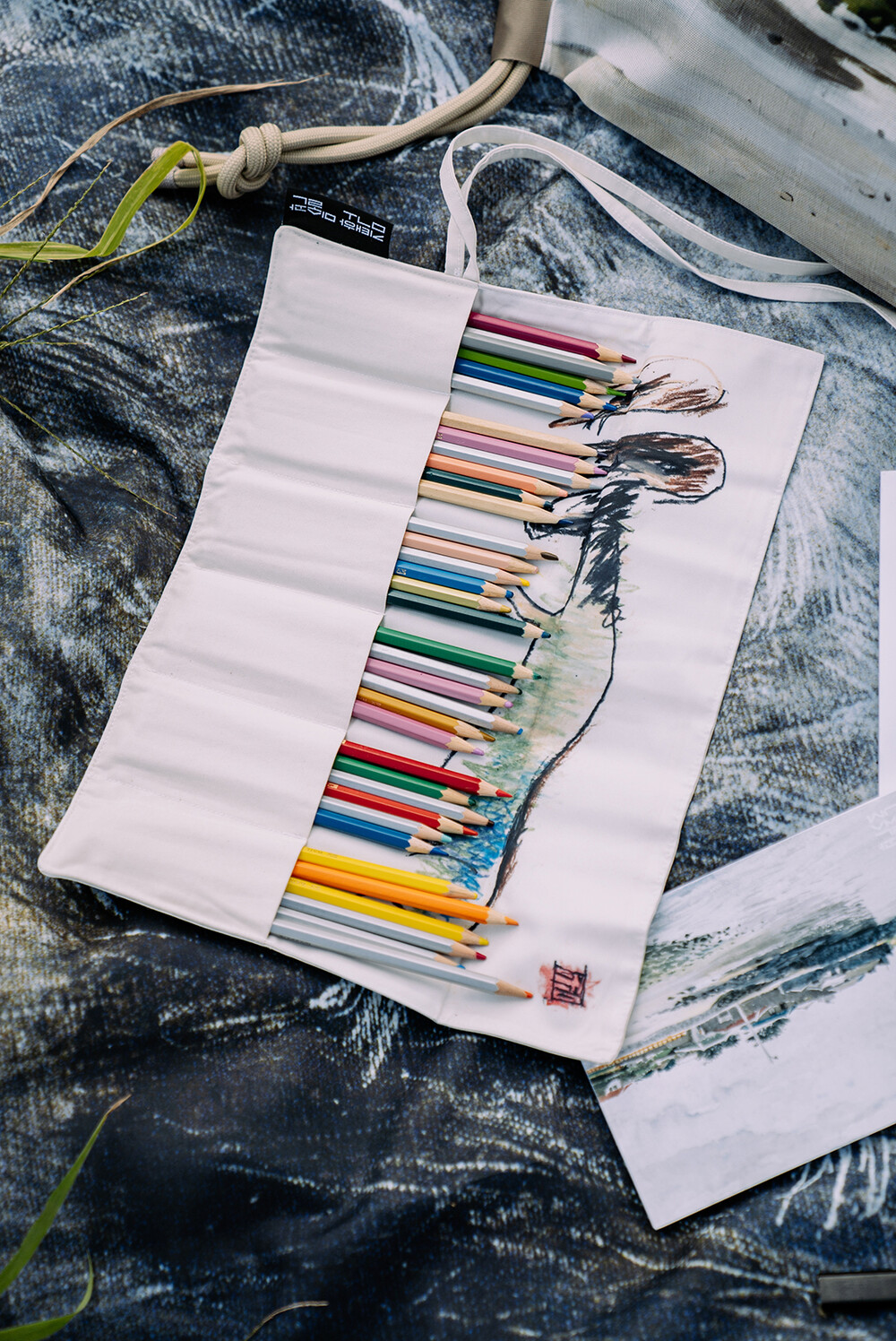 김택화화백의 생전 마지막 스케치 작품이 안감에 프린트된 색연필 케이스입니다.