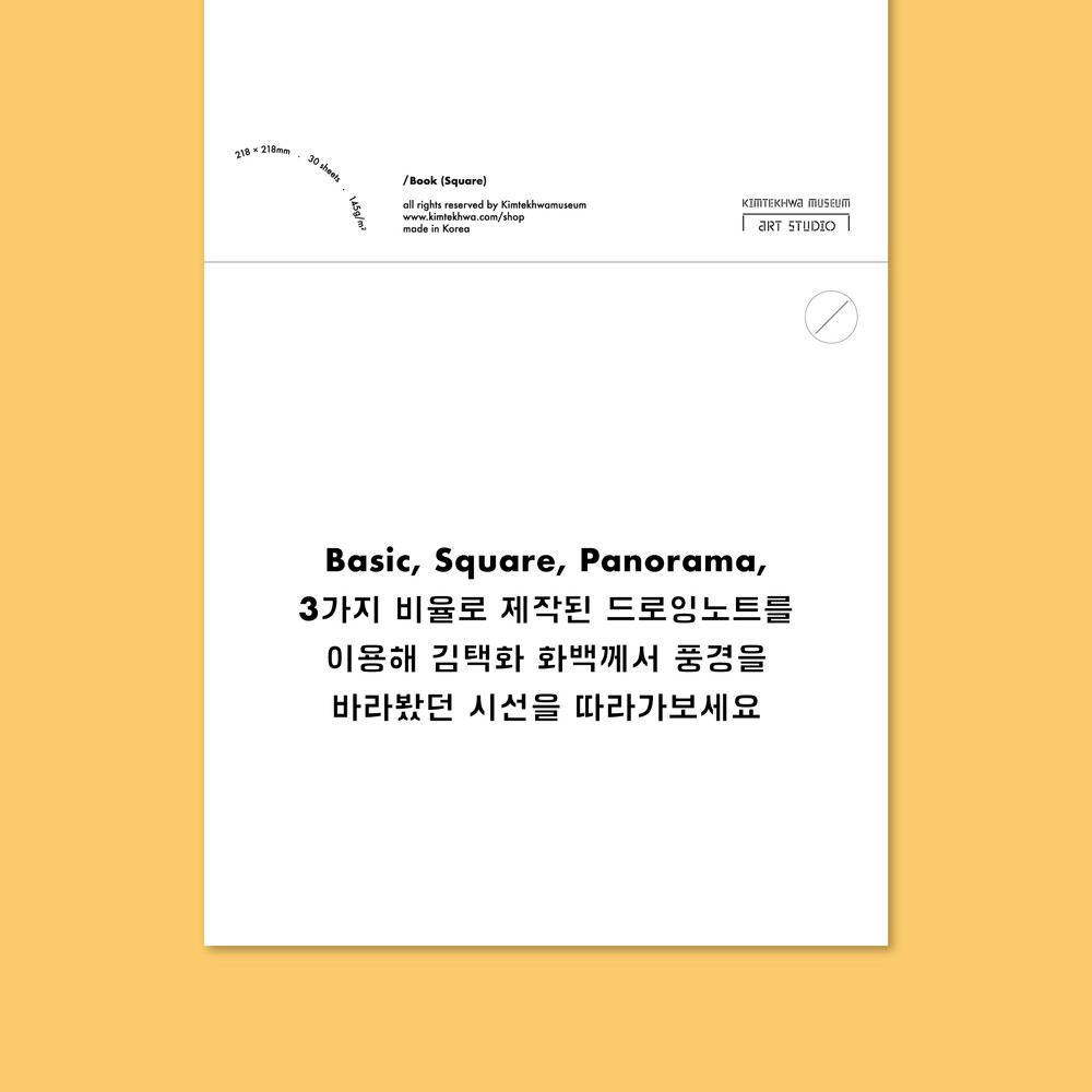 Basic, Square, Panorama 3가지 비율로 제작된 드로잉노트를 이용해 김택화 화백께서 풍경을 바라봤던 시선을 따라가보세요.