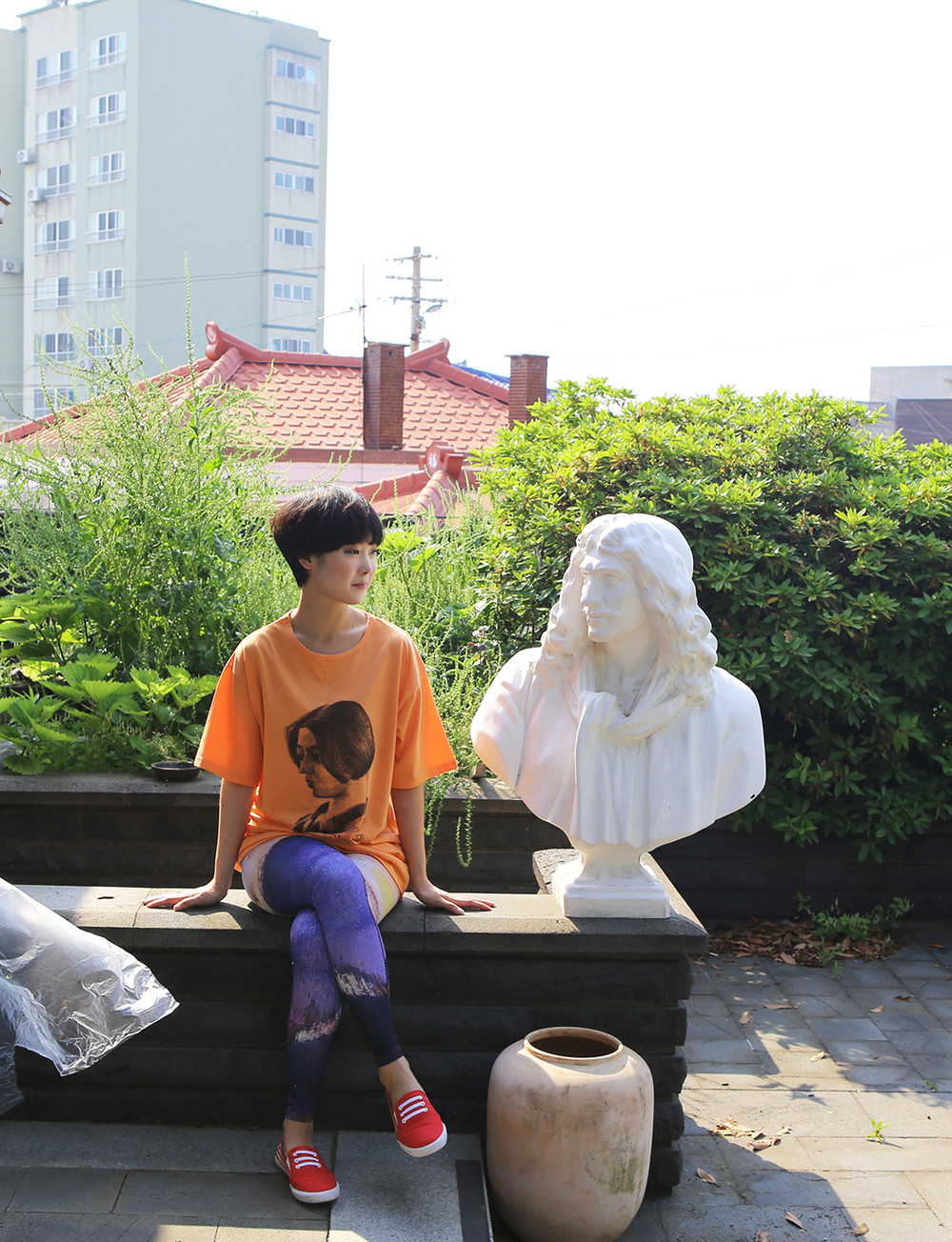 일반적인 티셔츠보다 총장이 긴 디자인입니다.